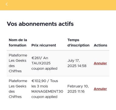 En cas de double abonnement actif, cliquez sur "Annuler". Cela vous évitera de futurs prélèvements non souhaités 😊