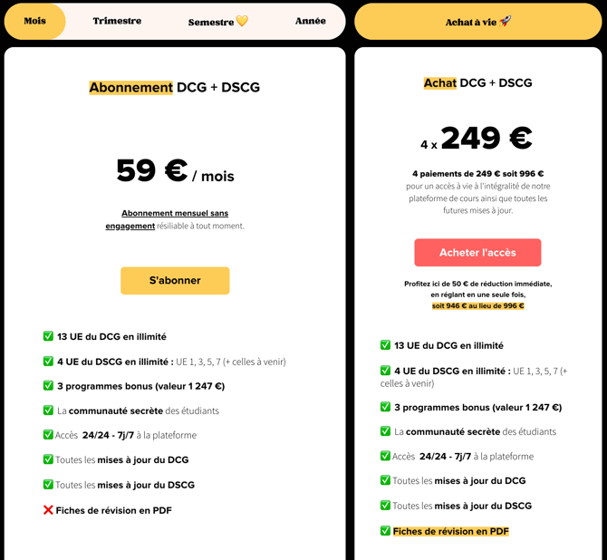 4. La page “Tarifs” s’affichera avec nos 4 offres d’abonnement :