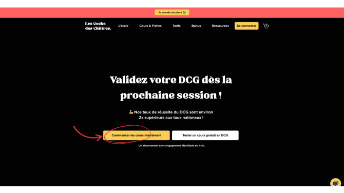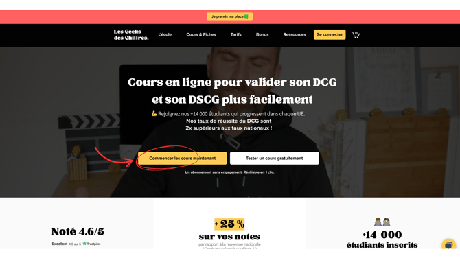 1. Sur la page d’accueil du Site “Les Geeks des Chiffres”, vous trouverez le bouton “commencer les cours maintenant”